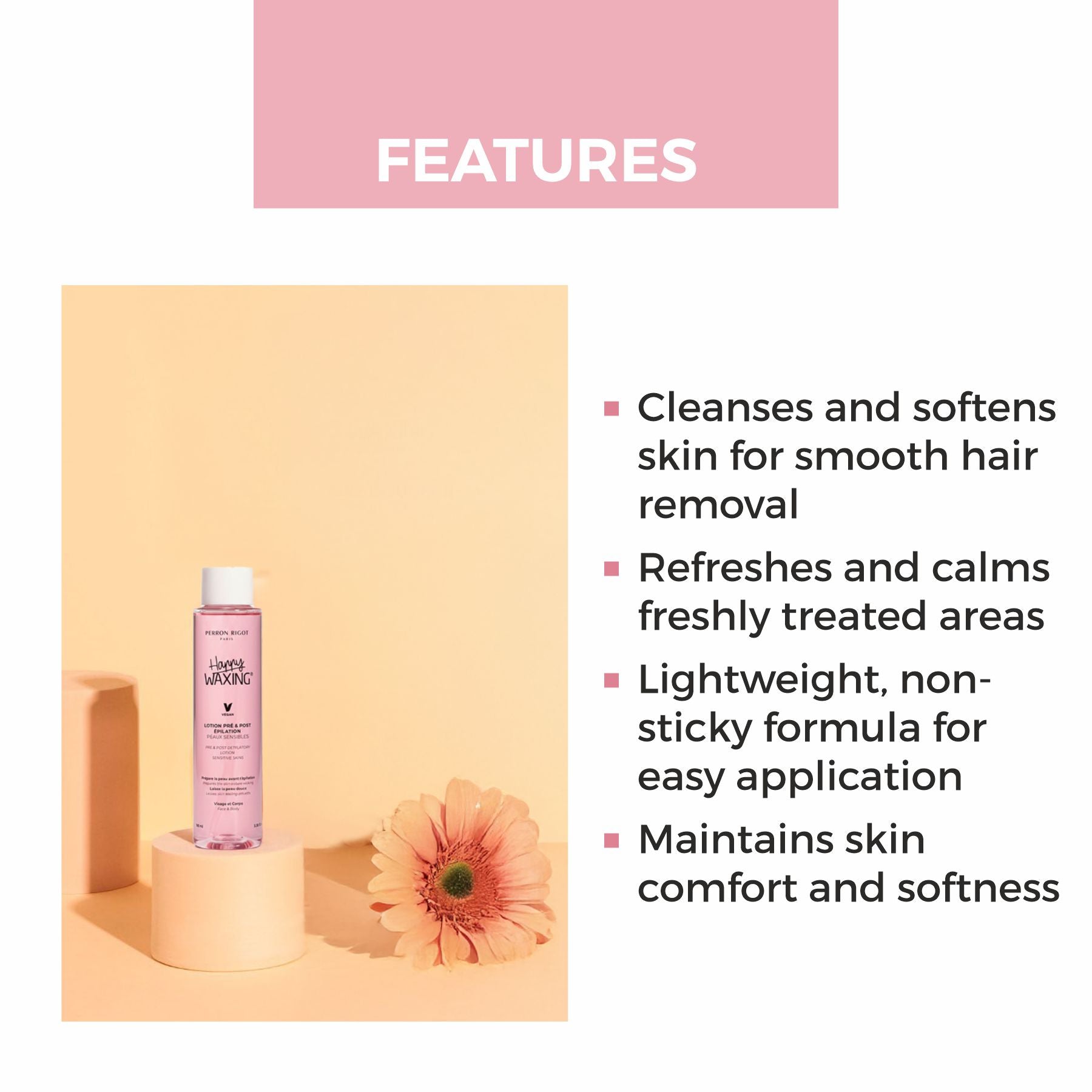 The Perron Rigot Pre & Post Depilatory Lotion gently prepares and refreshes the skin for a comfortable hair removal experience. Use it before waxing to cleanse, soften, and soothe the skin, and after waxing to refresh and calm sensitive or freshly treated areas. Its lightweight, non-sticky formula leaves skin feeling soft, comfortable, and ready for smooth results — making every waxing experience easier and more comfortable.