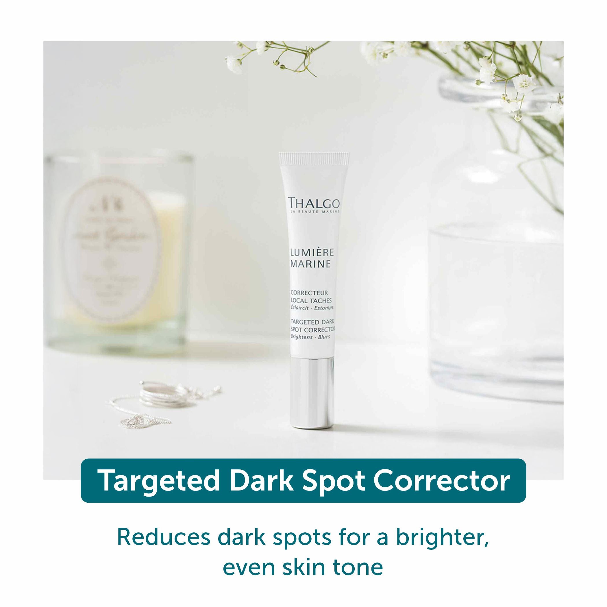 - Experience visible reduction in pigmentation with the Thalgo Targeted Dark Spot Corrector, which works to diminish dark spots and uneven skin tone.